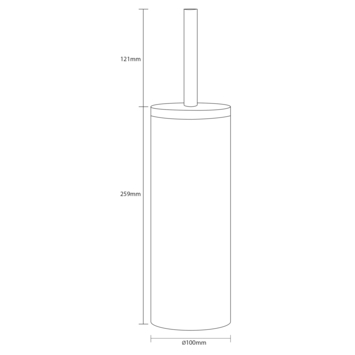 Deze toiletborstel met houder is 39 cm hoog en heeft een diameter van 10 cm.