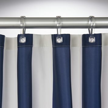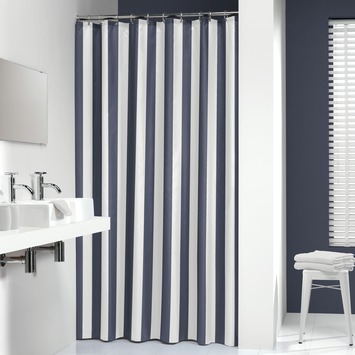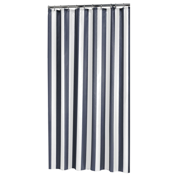 De Sealskin Linje douchegordijn blauw 180 x 200 cm geeft je badkamer een stijlvolle uitstraling van het kwaliteitsmerk Sealskin. Dit douchegordijn met een eenvoudig strepen patroon in een mooie donkerblauw met witte kleur, kleedt je badkamer aan, maar dan op een neutrale en rustige manier. Het is een textiel douchegordijn gemaakt van 100% polyester en is voorzien van een waterafstotende coating. De afmeting van 180 bij 200 centimeter maakt je douchegordijn geschikt voor toepassing in een nis of hoek van de badkamer. Dit product is tevens wasbaar op 30°C.