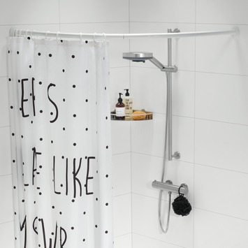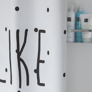 Geef je badkamer een moderne en trendy uitstraling met het douchegordijn Lyrics zwart van het kwaliteitsmerk Sealskin. Het is een textiel douchegordijn gemaakt van 100% polyester en is voorzien van een waterafstotende coating. Uitgevoerd in zwart-wit en met de moderne tekst en stipjes draagt dit product bij aan de moderne uitstraling van je badkamer. De afmeting van 180x200 cm maakt je douchegordijn geschikt voor toepassing in een nis of hoek van de badkamer. Dit product is tevens machine wasbaar op 30°C.