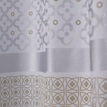 Breng je badkamer in de sfeer van het sprookje van 1001 nacht met het douchegordijn Marrakech van het kwaliteitsmerk Sealskin. Het is een textiel douchegordijn gemaakt van 100% polyester en is voorzien van een waterafstotende coating. De hammam patronen zijn uitgevoerd in metallic zilver en goud kleuren en dit geeft je badkamer een stijlvolle uitstraling. De afmeting van 180x200 cm maakt je douchegordijn geschikt voor toepassing in een nis of hoek van de badkamer. Dit product is tevens wasbaar op 30°C.