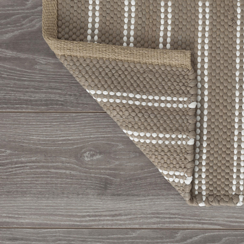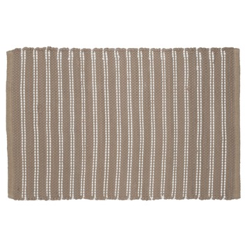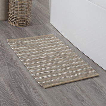 Sealskin Patan badmat linnen 60x90 cm van het kwaliteitsmerk Sealskin is gemaakt van 100% gerecyclede katoen vezels. Buiten het feit dat het een "groene" badmat is en dus een bewuste keuze, geeft de Patan badmat ook een prettig gevoel aan de voeten. De Patan badmat in de kleur linnen met witte lijnen geeft de badkamer een warme uitstraling en past in iedere gangbare badkamer. De Patan badmat is 60 bij 90 centimeter en is linnen met wit gestreept, dit geeft een warm en knus effect. Deze badmat is goed wasbaar op 30 graden.