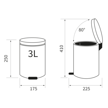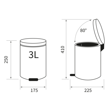 Deze pedaalemmer meet 27x25,2x18,5 cm en heeft een inhoud van 3 liter.