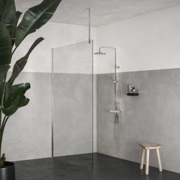 Deze universele plafondsteun van 80 cm kan gebruikt worden om je glazen douchewand van 6, 8 of 10 mm te stabiliseren aan het plafond. Je hebt dan geen horizontale steun nodig. Deze variant heeft een tijdloze zilver hoogglans afwerking. De minimale afstand tussen de bovenzijde van het glas en het plafond is 76 mm. De maximale afstand is 836 mm.