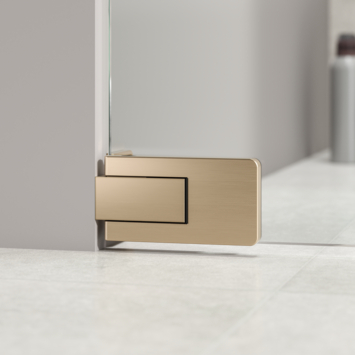 De geborsteld gunmetal grijze afwerking van de scharnieren en handgreep geeft een moderne en stijlvolle uitstraling aan elke minimalistische badkamer