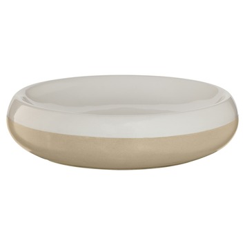 Deze schaal is geschikt als zeepbakje, maar ook om een horloge of sieraden in te leggen. Het is een deel van de Sealskin Sphere serie die bestaat onder andere uit een beker, kaarsenhouder, toiletborstelhouder, zeepdispenser en deze schaal. Dit is de Sealskin Schaal Sphere Porselein Zand die, zoals de productnaam al zegt, gemaakt is van hoogwaardig porselein. Het combineert 2 kleuren tot een speels contrast. Deze serie is in meerdere kleuren verkrijgbaar.