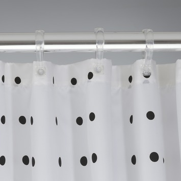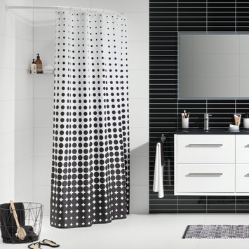 Geef je badkamer een trendy uitstraling met het douchegordijn Speckles zwart van het kwaliteitsmerk Sealskin. Het is een textiel douchegordijn gemaakt van 100% polyester en is voorzien van een waterafstotende coating. Uitgevoerd in modern zwart-wit en met de moderne stippen patroon draagt dit product bij aan de speelse en hippe uitstraling van je badkamer. De afmeting van 180x200 cm maakt je douchegordijn geschikt voor toepassing in een nis of hoek van de badkamer. Dit product is tevens machine wasbaar op 30°C.