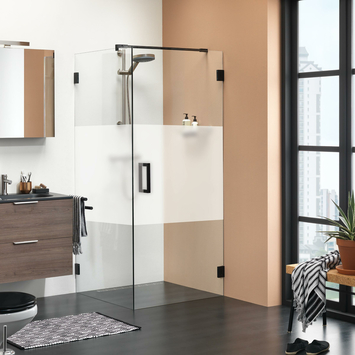 De volledig profielloze serie 'I AM' is met recht een transparante alleskunner. Naast diverse standaard maatvoeringen zijn talloze maatwerkoplossingen mogelijk. Zo kunnen de breedte en hoogte aangepast worden, maar bijvoorbeeld ook eventuele schuintes in de muren of het plafond opgevangen worden. Deze draaideur, voor combinatie met een vaste wand, wordt geleverd inclusief scharnieren en deurgreep. Het gaat hier om een rechts te monteren model, de linker variant kun je ook in de KARWEI webshop kopen namelijk de: Sealskin Swingdeur voor Douchewand I AM L 100x200 cm Zwart met Gesatineerde Band. Wat deze deur écht bijzonder maakt, is de matzwarte afwerking. Zo breng je een unieke sfeer in je badkamer. Deze draaideur en de bijpassende douchewand zijn tevens beschikbaar in een stoere RVS uitstraling en in een luxueuze zilver hoogglans afwerking.