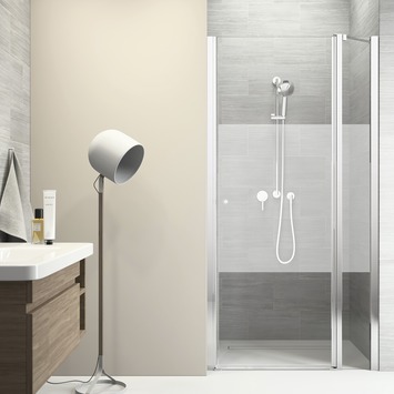 Zorg voor een zeer ruime instap voor je douche met deze Sealskin Swingdeur. De swingdeur is in een nis te monteren en geeft door zijn heldere glas, met stijlvolle gesatineerde band, een enorm open sfeer aan je badkamer. De glazen wand bestaat uit 6mm veiligheidsglas en heeft zelfs een antikalk coating. Onderhoud is daardoor kinderspel. Mede dankzij de 5 jaar garantie weet je zeker dat deze swingdeur een lange levensduur heeft. De deur is zowel naar binnen als naar buiten te openen en werkt dus ook prima in een wat compactere ruimte. De afmetingen van de deur zijn 100x197 cm, maar houd er rekening mee dat de breedte van de deur verstelbaar is. Met behulp van de meegeleverde schroeven, pluggen en handleiding kun je deze Sealskin Swingdeur voor Nis Code R 2-delig 100x197 cm met Gesatineerde Band eenvoudig zelf monteren. Let wel op dat we hier praten over een model dat aan de rechterzijde te monteren is. Mocht je de swingdeur aan de andere kant willen hebben dan kun je ook de linker variant in de KARWEI webshop kopen, namelijk de Sealskin Swingdeur voor Nis Code L 2-delig 100x197 cm met Gesatineerde Band.