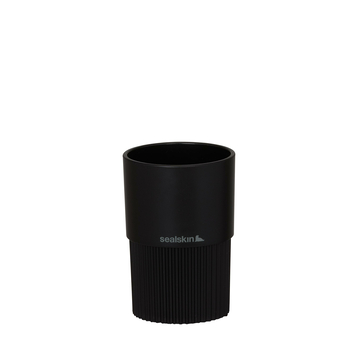 Deze Sealskin tandenborstelbeker van de serie Brave in de kleur zwart geeft een modieuze blik in je badkamer. Het geribbelde oppervlak zorgt ervoor dat je hem makkelijk kan vastpakken.