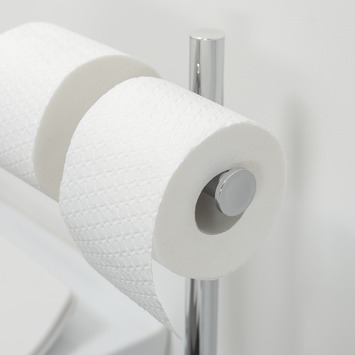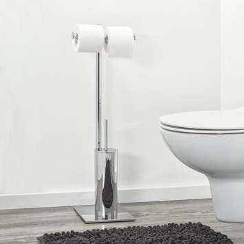 Deze butler komt je koffie niet brengen, maar staat wel altijd voor je klaar. Je kunt er je toiletrol op kwijt, er zit een toiletborstel met toiletborstelhouder op het standaard en je kunt er zelfs een reserve toiletrol op kwijt. Alles altijd bij de hand dus! De Sealskin Toiletbutler Tube Chroom is, zoals je in de titel kunt lezen, gemaakt van stijlvol verchroomd metaal. Ook kun je de witte variant kopen in de KARWEI webshop. Haal het maximale eruit door regelmatig met een vochtige doek langs de butler te gaan. Standaard zit er 1 jaar garantie op en met behulp van de montagehandleiding kun je hem eenvoudig zelf in elkaar zetten. De butler is 76 cm hoog 26,3 cm breed en 19,7 cm diep.