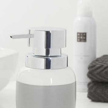 Deze zeepdispenser is deel van de Sealskin Sphere serie. Die serie bestaat onder andere uit een zeepbakje, toiletborstelhouder, beker en deze zeepdispenser. Dit is de Sealskin Zeepdispenser Sphere Lichtgrijs Keramiek die, zoals de productnaam al zegt, gemaakt is van hoogwaardig keramiek. Deze serie is in meerdere kleuren verkrijgbaar.