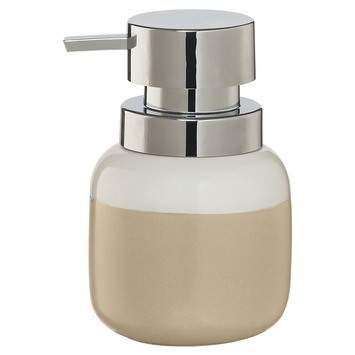 Deze zeepdispenser is deel van de Sealskin Sphere serie. Die serie bestaat onder andere uit een zeepbakje, kaarsenhouder, toiletborstelhouder, beker en deze zeepdispenser. Dit is de Sealskin Zeepdispenser Sphere Porselein Zand die, zoals de productnaam al zegt, gemaakt is van hoogwaardig porselein. Deze serie is in meerdere kleuren verkrijgbaar.