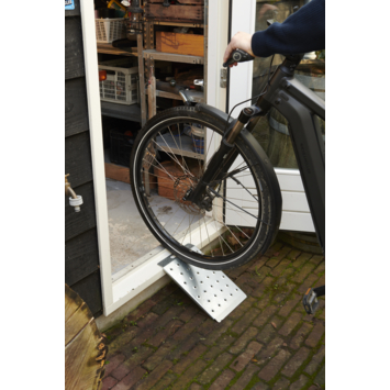 Erg handige hulp voor elektrische fiets inde schuur te rijden