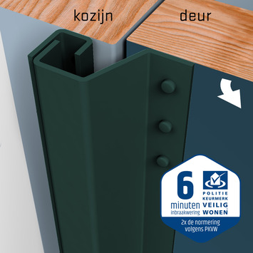 Kortom: de SecuStrip Plus Anti-Inbraakstrip Achterdeur Zwart Groen SKG* 2300 mm, 21-27 mm zorgt voor extra beveiliging van je achterdeur.