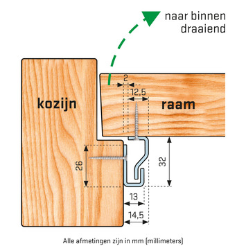 - Geschikt voor naar binnen draaiende ramen