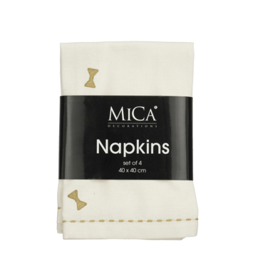 Deze katoenen servetten met gouden strikjes voegen op een subtiele manier feestelijkheid toe aan je tafel. De fijne print zorgt voor een charmante uitstraling zonder te overheersen, waardoor ze perfect zijn voor een etentje, brunch of gewoon een gezellige avond. Gemaakt van stevig katoen, dus herbruikbaar en praktisch in gebruik. Met een formaat van 40 bij 40 centimeter liggen ze mooi naast elk bord. Combineer met het bijpassende tafelkleed voor een sfeervol geheel.