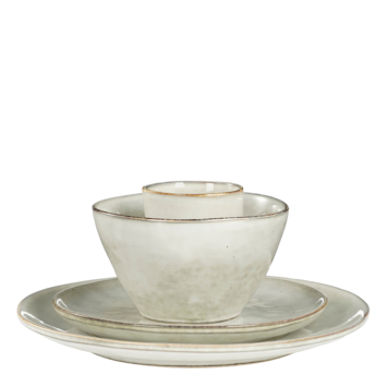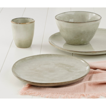 Rustiek en robuust, zo kan dit prachtige servies het beste worden omschreven. Geen wit porselein met saaie volmaakte lijnen, maar handgemaakte, keramieken producten in gekleurde tinten. Elk met een eigen, authentieke look die past bij puur genieten. Waarom zou je dan voor één item gaan als je ook gelijk een hele set kan nemen? Deze serviesset bestaat uit 16 delen en is geschikt voor 4 personen. De set telt 4 mokken van 300 ml met afmeting van H8,5 xø7,5 cm, 4 schaaltjes van ø14 cm (750 ml), 4 kleine borden vanø20,5 cm en 4 dinerborden van ø26,5 cm. Het servies past door de stoere, grijze kleur in elk interieur! Daarnaast kan elk item zowel in de vaatwasser als in de magnetron worden gezet en is het servies hittebestendig tot 160°C.