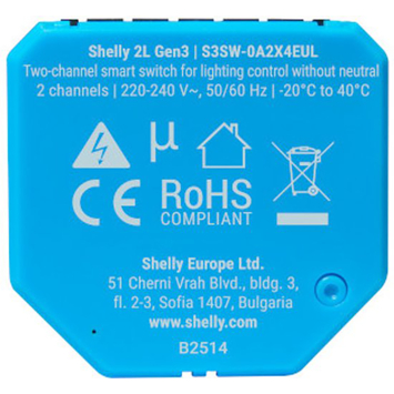De Shelly 2L Gen3 slimme schakelaar WiFi (2 kanalen) is een lichtschakelaar waarmee je bestaande verlichting slim maakt. Dankzij de 2-draads aansluiting werkt hij ook in woningen zonder nuldraad. Je plaatst hem achter een bestaande wandschakelaar en bedient twee lampen afzonderlijk via WiFi of Bluetooth. Zo schakel je verlichting met de hand of via de app waardoor je altijd controle hebt.