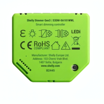 De Shelly Dimmer Gen3 slimme LED dimmer WiFi is een compacte module waarmee je lampen draadloos bedient. Dankzij WiFi en Bluetooth koppel je hem eenvoudig aan je Smart Home systeem zonder extra hub. Je schakelt of dimt verlichting via de app, je bestaande schakelaar of spraakbediening met Google Assistant en Amazon Alexa. Zo stel je het licht in elke ruimte precies af op jouw behoefte.