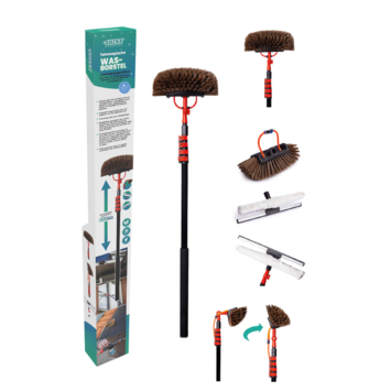 Maak het schoonmaken van buitenoppervlakken eenvoudiger met de Shine telescopische waterbezem. Deze handige bezem bestaat uit vijf delen die uitschuifbaar zijn tot 6,5 meter, waardoor je gemakkelijk bij lastig te bereiken plekken zoals ramen, kozijnen en zonnepanelen kunt komen. We raden aan om bij het reinigen van ramen en zonnepanelen een zachte borstel te gebruiken zonder al te veel druk uit te oefenen om beschadigingen te voorkomen.