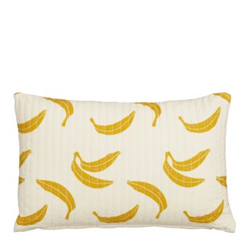 Breng een tropische sfeer in je interieur met dit off-white sierkussen met bananenprint. Gemaakt van zacht katoen met een levendige print en een comfortabele vulling, is dit kussen perfect voor elke bank of stoel. Met een afmeting van L55 x B35 x H10 cm. Voeg een vrolijke touch toe aan je ruimte met dit kleurrijke kussen!