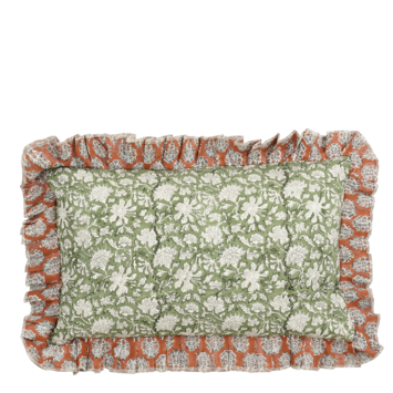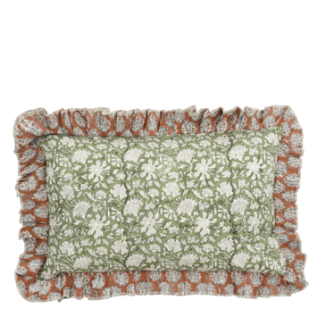 Van de bank tot het bed: dit sierkussen komt overal tot zijn recht! Het kussen heeft een gezellig bloemenmotief in het groen. Verder is hij gemaakt van katoen waardoor hij heerlijk zacht is. Praktisch en mooi! De afmetingen van het kussen zijn L55 x B35 x H10 cm.