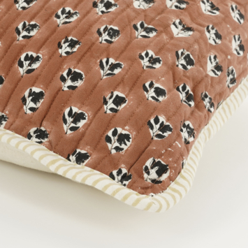 Lekker stevig en toch zacht kussen. Mooi terra kleur met leuke print. Prachtige match met onze donkergroene bank