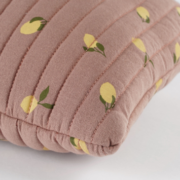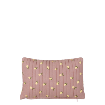 Dit sierkussen voegt een speelse touch toe aan je interieur. Dit rechthoekige kussen is bruin met motief van citroenen. Ook heeft hij een geribbelde afwerking: extra schattig detail. Erg leuk om je bank mee op te fleuren of in een kamer met een thema! Het is handgemaakt van hoogwaardig katoen, waardoor het ook nog eens zacht en comfortabel is om tegenaan te zitten tijdens het lezen of tv-kijken. Verder is de kussenhoes afneembaar door de ritssluiting en heeft het kussen een extra veiligheidskenmerk door de brandvertragende vulling. Plaats het kussen als decoratie op de bank, de fauteuil of op het bed en geniet van dit esthetische item. De lengte is 35 cm, de breedte is 25 cm en de hoogte is 10 cm.