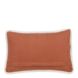 Op zoek naar het perfecte sierkussen dat lekker opvalt? Zoek dan niet verder! Dit rechthoekige sierkussen is de perfecte toevoeging aan een interieur met opvallende items. Het kussen, handgemaakt van katoen, heeft een terra kleur met een leuke, witte flap om het kussen - leuk detail! Door de zachte en brandvertragende vulling is dit kussen erg comfortabel om tegenaan te zitten. Leg hem op je bank, fauteuil of bed als decoratie! Het kussen heeft een lengte van 45 cm, een breedte van 45 cm en een hoogte van 10 cm.