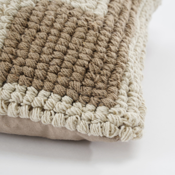 Dit sierkussen voegt een elegante touch toe aan je interieur. Het vierkante kussen is bruin met beige patronen, waardoor het stijl uitstraalt. Het is handgemaakt van katoen: heerlijk zacht en comfortabel om tegenaan te zitten tijdens het lezen of tv-kijken. Plaats dit sierkussen als decoratie op de bank of op het bed en geniet van dit esthetische item. Verder voegt het niet alleen flair toe, maar heeft het ook nog eens een extra veiligheidskenmerk door de brandvertragende vulling. De afmetingen zijn L45 x B45 x H10 cm.