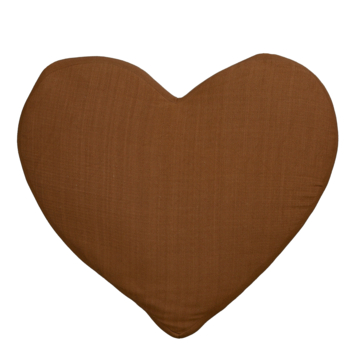 Breng romantiek en gezelligheid in huis met dit charmante hartvormige sierkussen! Met zijn zachte katoenen stof en warme bruine tint is het de perfecte aanvulling voor je bank of fauteuil. Lekker comfortabel op tegenaan te zitten. De afmetingen zijn L45 x B45 x H8 cm.