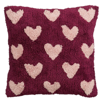 - Donkerroze sierkussen met speelse hartjesprint