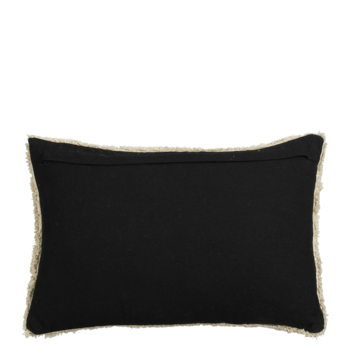 Geef je interieur een romantische en speelse touch met een sierkussen vol hartjes! Dit kussen straalt warmte en gezelligheid uit, en voegt een vrolijk accent toe aan elke kamer. Perfect om je bank of fauteuil een knusse uitstraling te geven. Hij is gemaakt van katoen, komt in een zwarte kleur en heeft de afmetingen L55 x B35 x H10 cm.