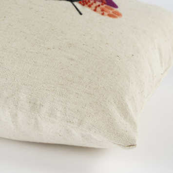 Geniet van natuurlijke schoonheid binnenshuis! Dit rechthoekige sierkussen is Crème en heeft een mooi borduurwerk van drie insecten in verschillende opvallende kleuren op de voorkant. In het borduursel zijn ook kralen verwerkt, erg mooi! Het kussen is van katoen en met de hand gevuld, waardoor je heerlijk comfortabel er tegenaan kan leunen. Verder is deze vulling van brandvertragend materiaal. Dan zit je toch nog iets lekkerder! Door de ritssluiting kun je de kussenhoes eenvoudig verwijderen. De afmetingen zijn L35 x B25 x H7 cm.