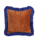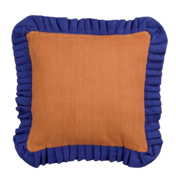 Stijlvol, maar comfortabel. Dat is dit sierkussen! Hij is gemaakt van zacht katoen en komt met een fluwelen afwerking. Dit zorgt ervoor dat hij heerlijk zacht is. Verder is hij bruin met opvallende blauwe ruches. Kortom, dit is echt de finishing touch voor op je bank of fauteuil. De afmetingen zijn L57 x B57 x H10 cm.