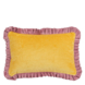 Stijlvol, maar comfortabel. Dat is dit sierkussen! Hij is gemaakt van zacht katoen en komt met een fluwelen afwerking. Dit zorgt ervoor dat hij heerlijk zacht is. Verder is hij geel met opvallende roze ruches. Kortom, dit is echt de finishing touch voor op je bank of fauteuil. De afmetingen zijn L65 x B45 x H10 cm.