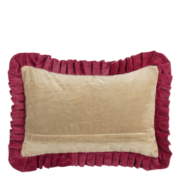 Stijlvol, maar comfortabel. Dat is dit sierkussen! Hij is gemaakt van zacht katoen en komt met een fluwelen afwerking. Dit zorgt ervoor dat hij heerlijk zacht is. Verder is hij taupe met opvallende roze ruches. Kortom, dit is echt de finishing touch voor op je bank of fauteuil. De afmetingen zijn L65 x B45 x H10 cm.
