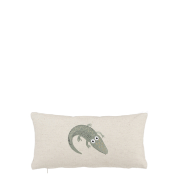 Heeft de slaapkamer van je kleintje een safarithema? Daar hoort dit sierkussen dan ook bij. Het heeft een leuke groene kleur en is voorzien van een krokodillenmotief. Doordat het is vervaardigd van katoen voelt het heerlijk zacht aan. Naast een mooi decoratiestuk, is het sierkussen dus ook heerlijk voor je kleintje om mee te knuffelen. Het heeft als afmeting L40 x B20 x H10 cm.