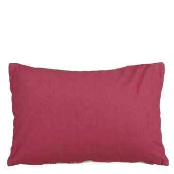 Dit off-white sierkussen met een opvallende roze-oranje krulprint is dé eyecatcher voor je interieur! De felle kleur en speelse print brengen direct leven in je woonkamer of slaapkamer. Perfect om een saaie bank op te fleuren of een vrolijk accent toe te voegen. Verder is hij gemaakt van katoen waardoor hij heerlijk zacht is. Comfortabel en stijlvol! De afmetingen zijn L55 x B35 x H10 cm.