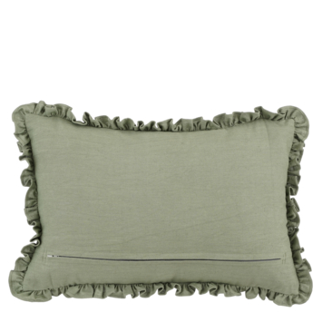 Staat de bank of of het bed er verlaten en saai bij? Breng daar op een gemakkelijke manier verandering in aan met dit fraaie sierkussen. Het heeft een leuke groene kleur met een speelse, gerafelde rand. Doordat het van katoen is gemaakt, voelt het heerlijk zacht aan. Het sierkussen heeft als afmeting L55 x B 35 x H10 cm en past in elke woonstijl.