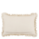 Staat de bank of of het bed er verlaten en saai bij? Breng daar op een gemakkelijke manier verandering aan met dit fraaie sierkussen. Het heeft een leuke, off white kleur met een speelse, gerafelde rand. Zo heb je een geweldige decoratieve toevoeging in de kamer. En doordat het van katoen is gemaakt, voelt het heerlijk zacht aan. Het sierkussen heeft als afmeting L55 x B 35 x H10 cm en past in elke woonstijl.