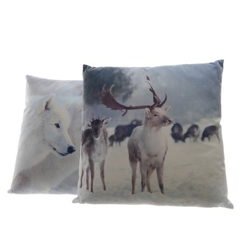 In combinatie met het najaar/herfst en de kerstperiode verhogen deze kussens in wintersfeer, met een afbeelding van een poolwolf of rendier, de aangename sfeer in huis. Combineer de diverse afbeelding op je bank of fauteuil. Kussenafmeting 45x45 cm met 350 gram vulling.
