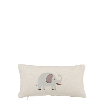 Heeft de slaapkamer van je kleintje een safarithema? Daar hoort dit sierkussen dan ook bij. Het heeft een leuke lichtgrijze kleur en is voorzien van een fijn olifantenmotief. Doordat het is vervaardigd van katoen voelt het heerlijk zacht aan. Naast een mooi decoratiestuk, is het sierkussen dus ook heerlijk voor je kleintje om mee te knuffelen. Het heeft als afmeting L40 x B20 x H10 cm.