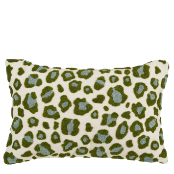 Dit sierkussen heeft een stoere panterprint en zorgt voor een hippe uitstraling. Het past in elke woonstijl en brengt extra sfeer aan. Het is gemaakt van stevig katoen en voelt heerlijk zacht aan. Het is dus naast een prachtig decoratiestuk ook ideaal om mee te relaxen. Het sierkussen heeft een mooie, opvallende groene kleur en heeft als afmeting L55 x B35 x H14 cm.