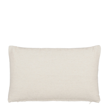 Dit sierkussen voegt een elegante touch toe aan je interieur. Dit rechthoekige kussen is off white en heeft een subtiel patroon, waardoor het verfijning en stijl uitstraalt. Het is handgemaakt van katoen: heerlijk zacht en comfortabel om tegenaan te zitten tijdens het lezen of tv-kijken. Bovendien is de kussenhoes afneembaar dankzij de ritssluiting. Plaats dit sierkussen als decoratie op de bank of op het bed en geniet van dit esthetische item. Verder voegt dit kussen niet alleen flair toe, maar heeft het ook nog eens een extra veiligheidskenmerk door de brandvertragende vulling. De afmetingen zijn L55 x B35 x H10 cm.
