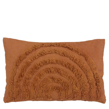 Dit sierkussen is functioneel en tegelijk ook decoratief. Dit bruine sierkussen is namelijk gemaakt van katoen en voelt daardoor heerlijk zacht aan. Ervaar de ultieme zachtheid en duik er lekker op weg na een drukke werkdag. Het sierkussen is voorzien van een leuk regenboogpatroon met een 3D-effect. Dus ook perfect om te gebruiken als decoratiestuk om er een saaie bank of bed mee op te fleuren. Afmeting: L55 x B35 x H10 cm.