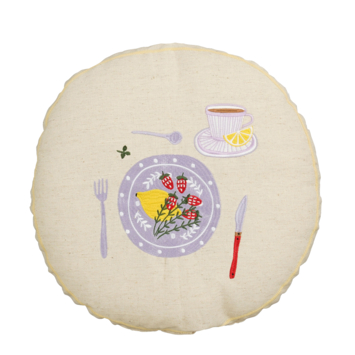 Houd je van een grappig item in je interieur? Dan is dit sierkussen perfect! Hij komt in een neutrale, witte kleur met een lila print die bestaat uit eten en drinken. Door deze print komt hij ook erg goed tot zijn recht in een kinder- of tienerkamer. De afmetingen zijn H10 x D45 cm.