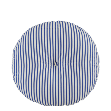 Ontdek ultiem comfort en stijl met dit ronde sierkussen! Het vrolijke, blauwe motiefje van dit kussen voegt een speelse touch toe aan elke ruimte, terwijl de katoenen stof zorgt voor een zachte ondersteuning tijdens het lezen van je favoriete boek of het kijken van een serie. Echt een aanwinst! Daar komt bij dat de comfortabele, brandvertragende vulling een geruststelling voor je gemoedstoestand is. Creëer een gezellige sfeer met deze must-have decoratie! Dit sierkussen heeft een hoogte van 10 cm en een diameter van 45 cm.