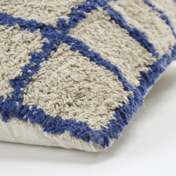 Geef je interieur een boost met dit sierkussen! Het tijdloze kussen heeft de vorm van een vierkant en is wit met een blauw blokpatroon. Door het ontwerp past het in elke woonstijl: van landelijk tot modern. Hij is handgemaakt van katoen. Hierdoor ziet hij er niet alleen leuk uit, maar is hij ook nog eens heerlijk om tegenaan te zitten. Mede door de zachte afwerking, wat fijn! Verder heeft het kussen een ritssluiting waardoor je de kussenhoes kunt reinigen en is hij gevuld met een brandvertragende vulling. De afmetingen zijn L45 x B45 x H10 cm.