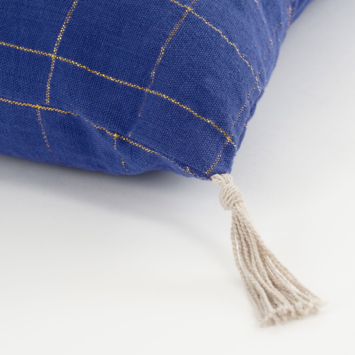 - Blauw sierkussen met klassieke ruitjes en schattige kwastjes op de hoekjes